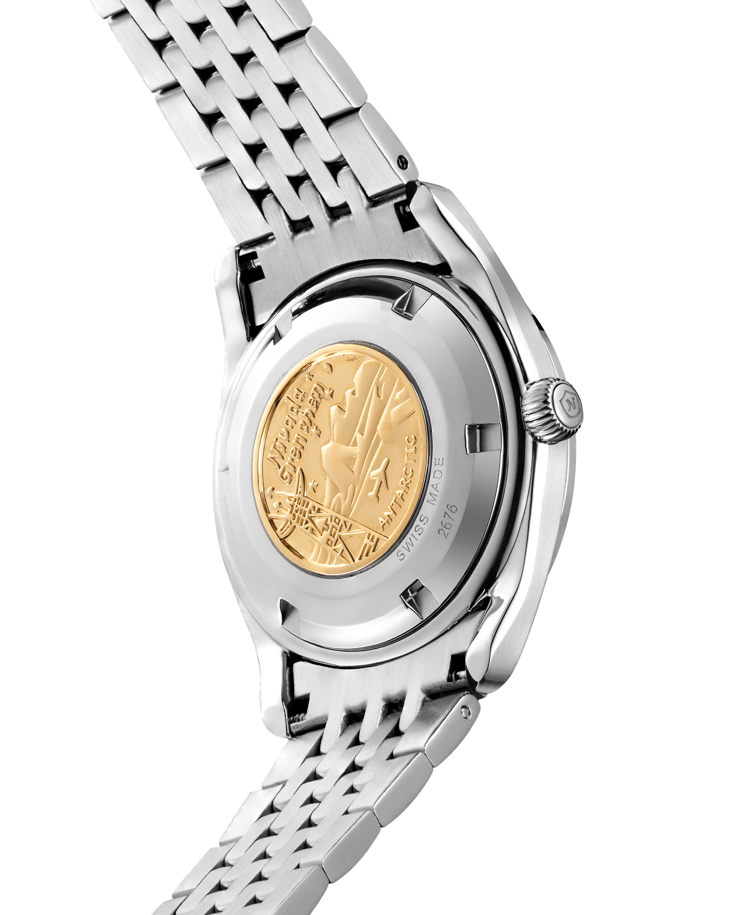 Two references are available: No-Date for pure symmetry, or Date for daily utility both housed in the Super Antarctic’s compact, wearable case format with modern upgrades like double-domed sapphire and a screw-down crown rated to 10 ATM / 100 m.